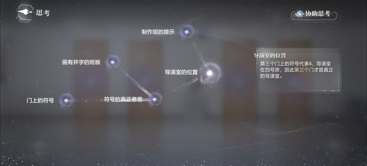 去思考关联所有线索,得到图二,得出第三个门是正确的,进门,成功逃脱。
