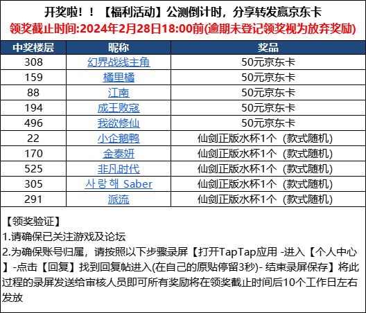 本次活动领奖截止时间为:2024年2月28日18:00前 请添加 【剑奇侠传新的开始官方交流QQ群:105714636 】 添加群管理【咕咕】好友后联系领奖,若超时未领取视为放弃奖励不作补发