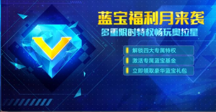 活动内容:蓝宝福利月活动期间,成为蓝宝会员将自动激活基础蓝宝基金,充值3个月蓝宝更能激活进阶蓝宝基金,总计登录10天,畅领奥拉辉石、奥拉晶石、辉石碎片及海量流星碎片等丰厚奖励。