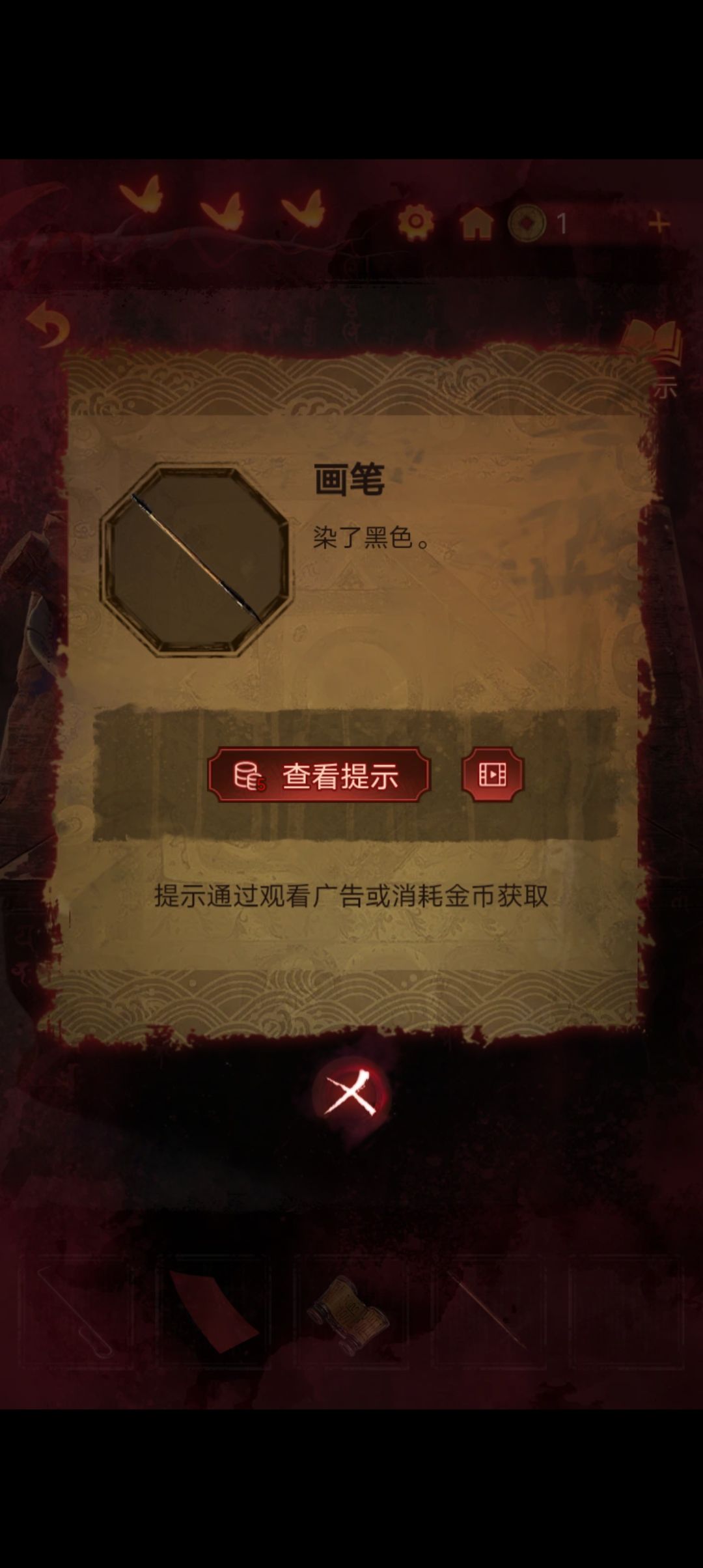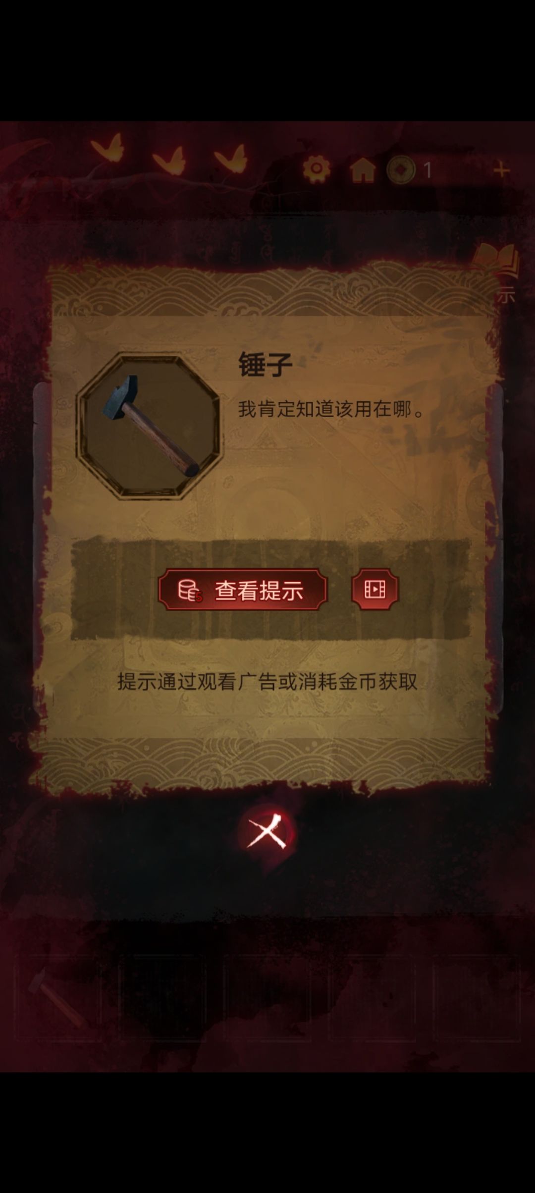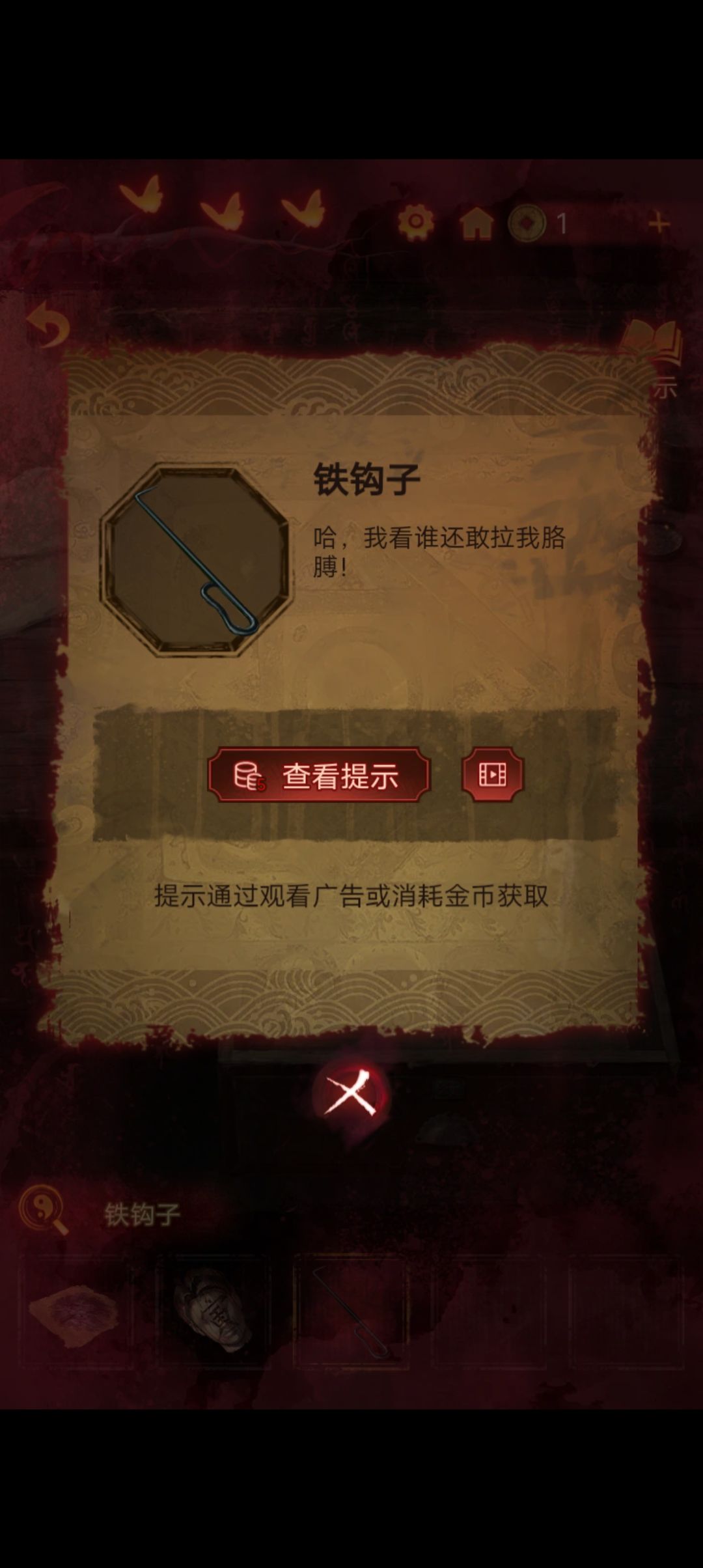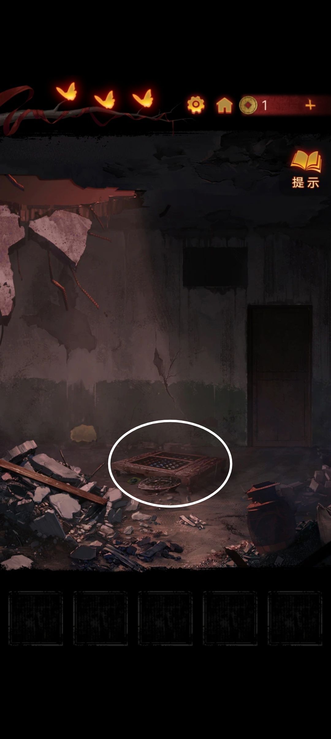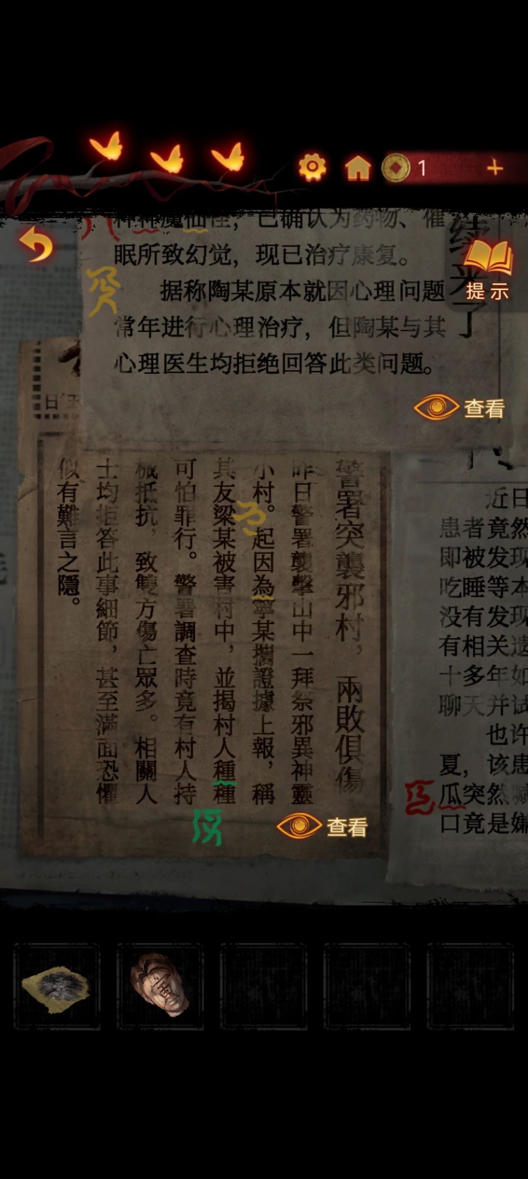 点击阴童子雕像,通过线索一步步调整底座上的『上下左右』,得到一把纸钱