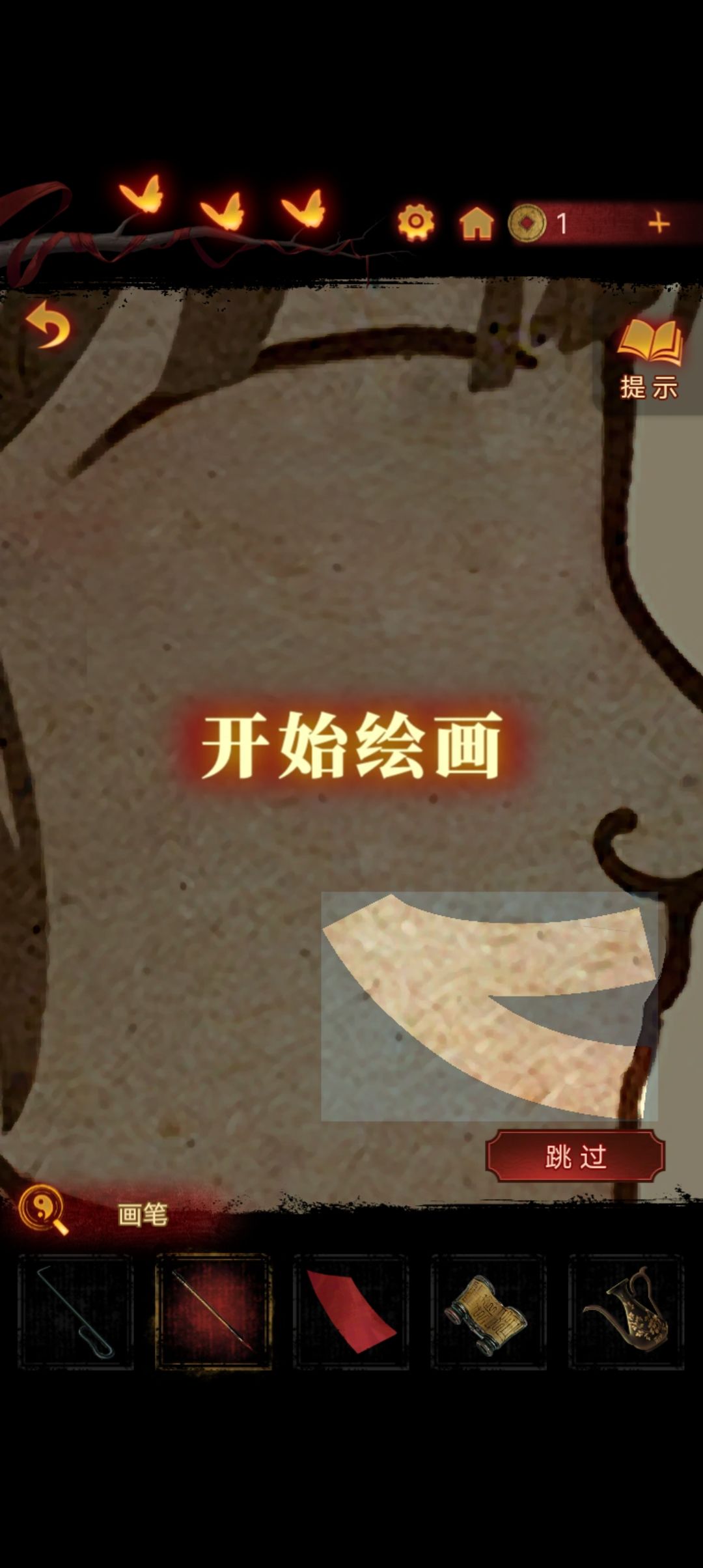 离开戏台,点击墙上的剧目海报,用笔给自己画个嘴巴,然后简单,不要画到灰色区域就可以了