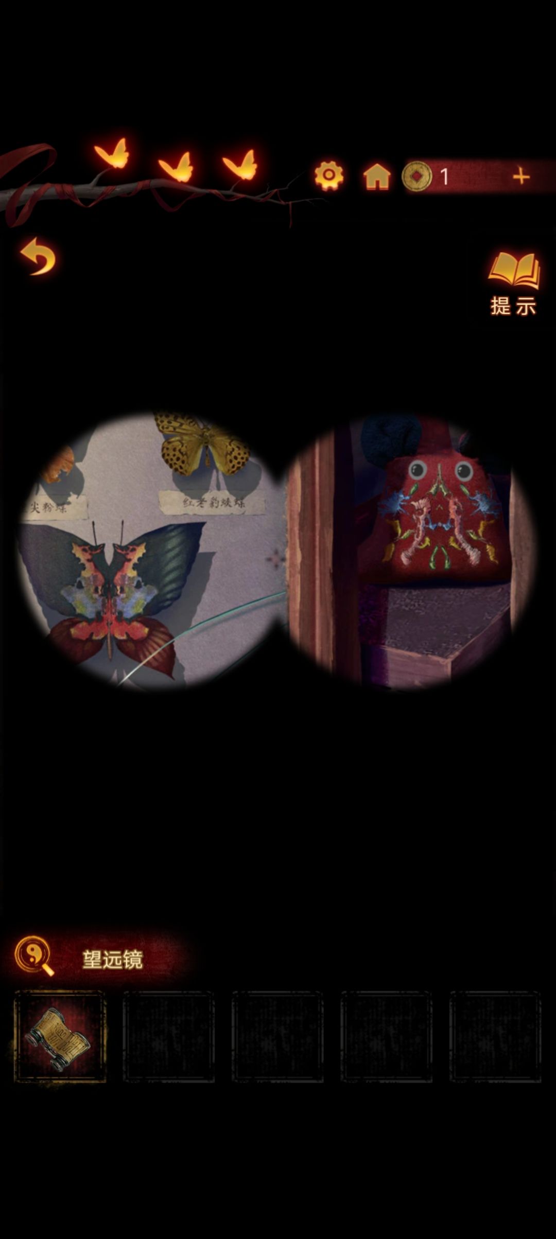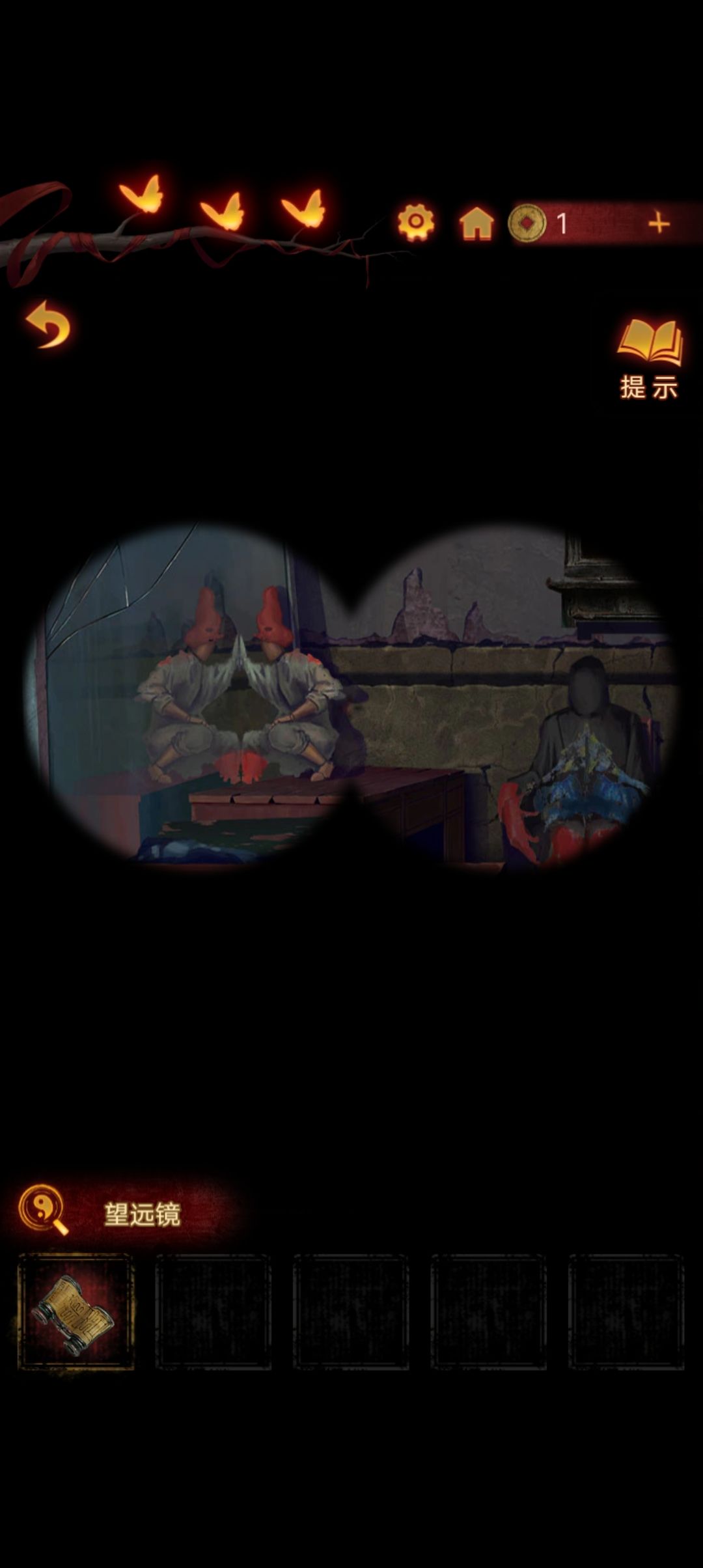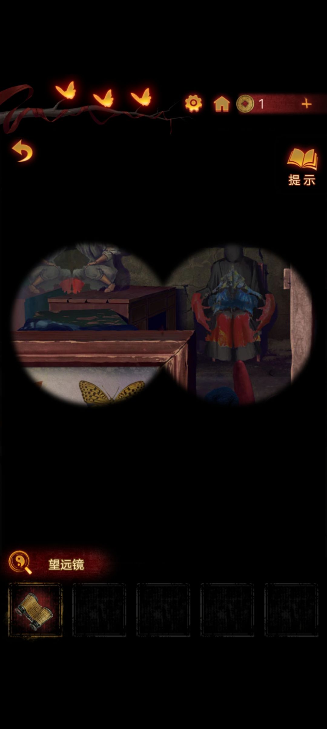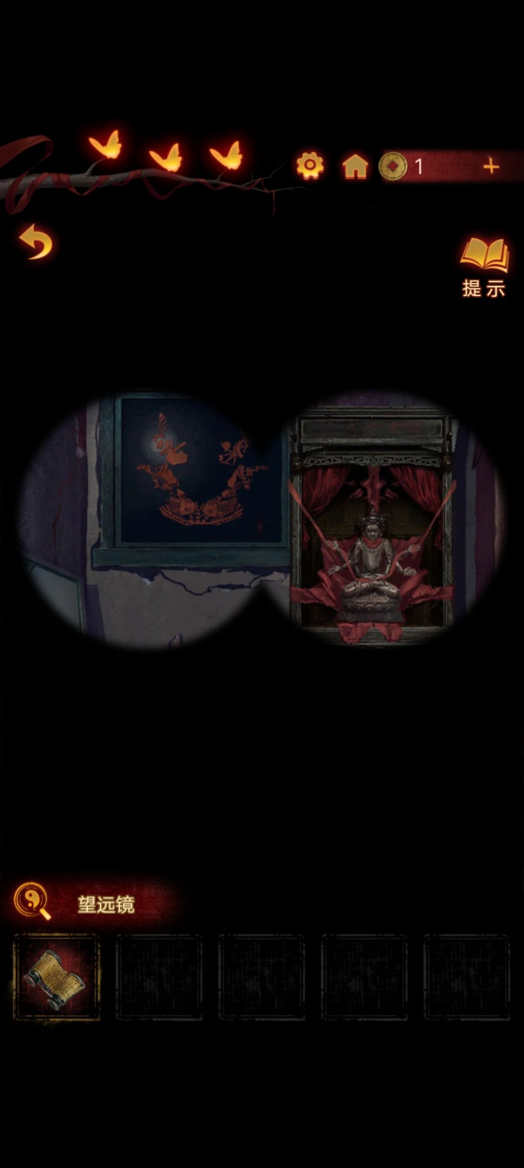 下楼,来到右侧房间,把牌位放在神龛里,打开暗格得到望远镜『注意牌位第一个字,虽然看不清,但是能看到有个尸字头,圈上待会考』