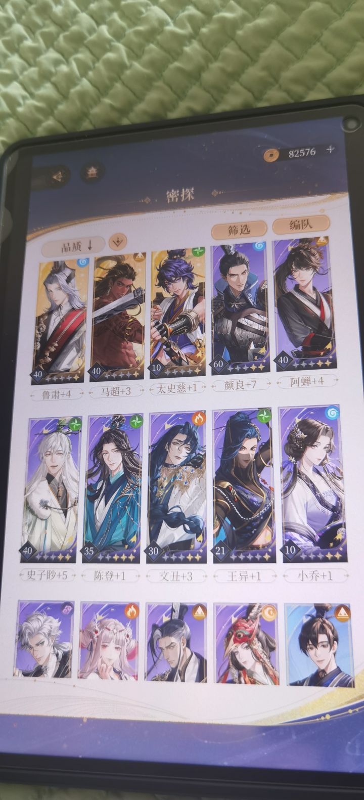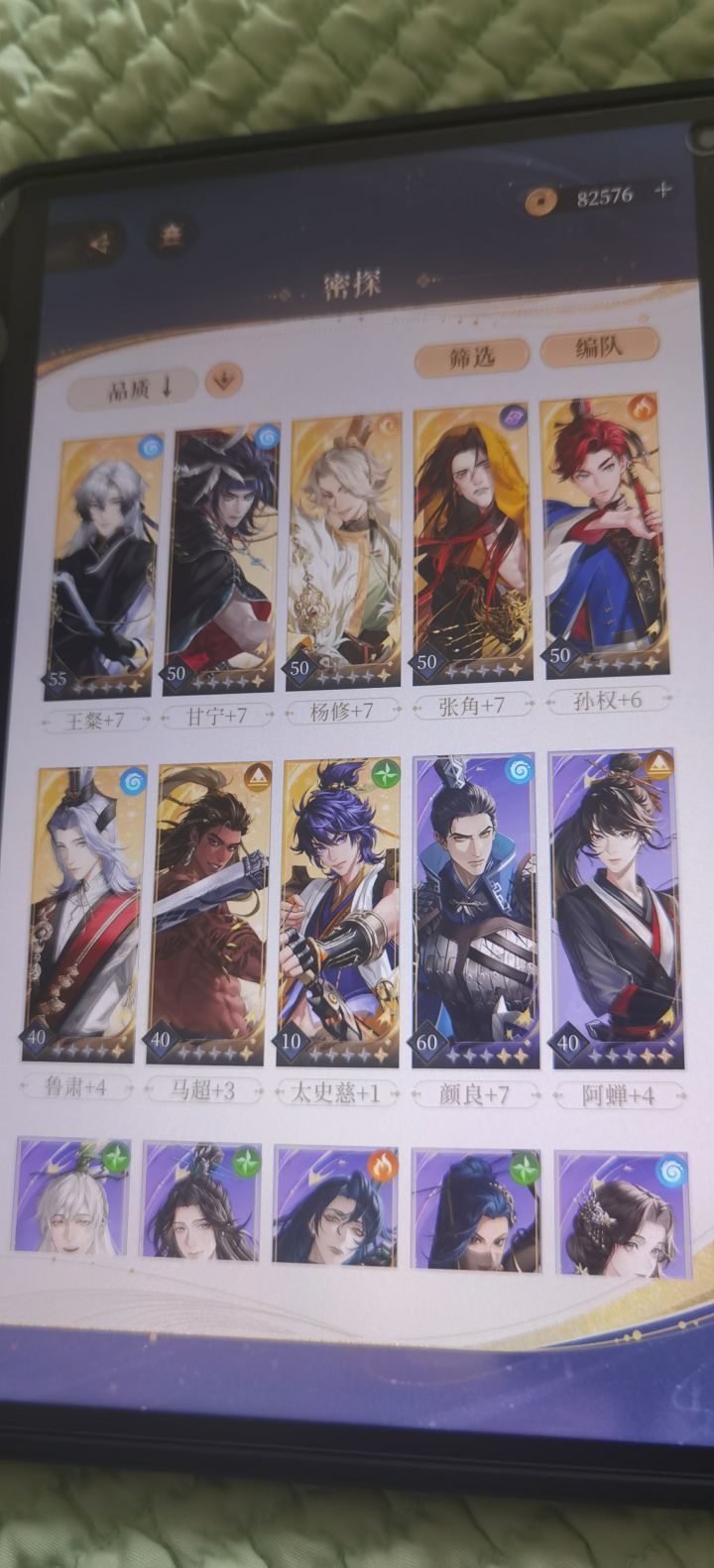 低光荷和醉骨草好少啊花了好多体力才突破了王粲和颜良又要攒了TAT五铢钱也不够用,星石好不容易出金结果两个全是辅星,请问各位我这样配能用吗,