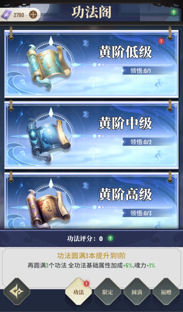 功法修练到十层可以额外获得能力,要升级需常去每日礼包以及市场等地方消耗金币、宝玉等货币进行购买。