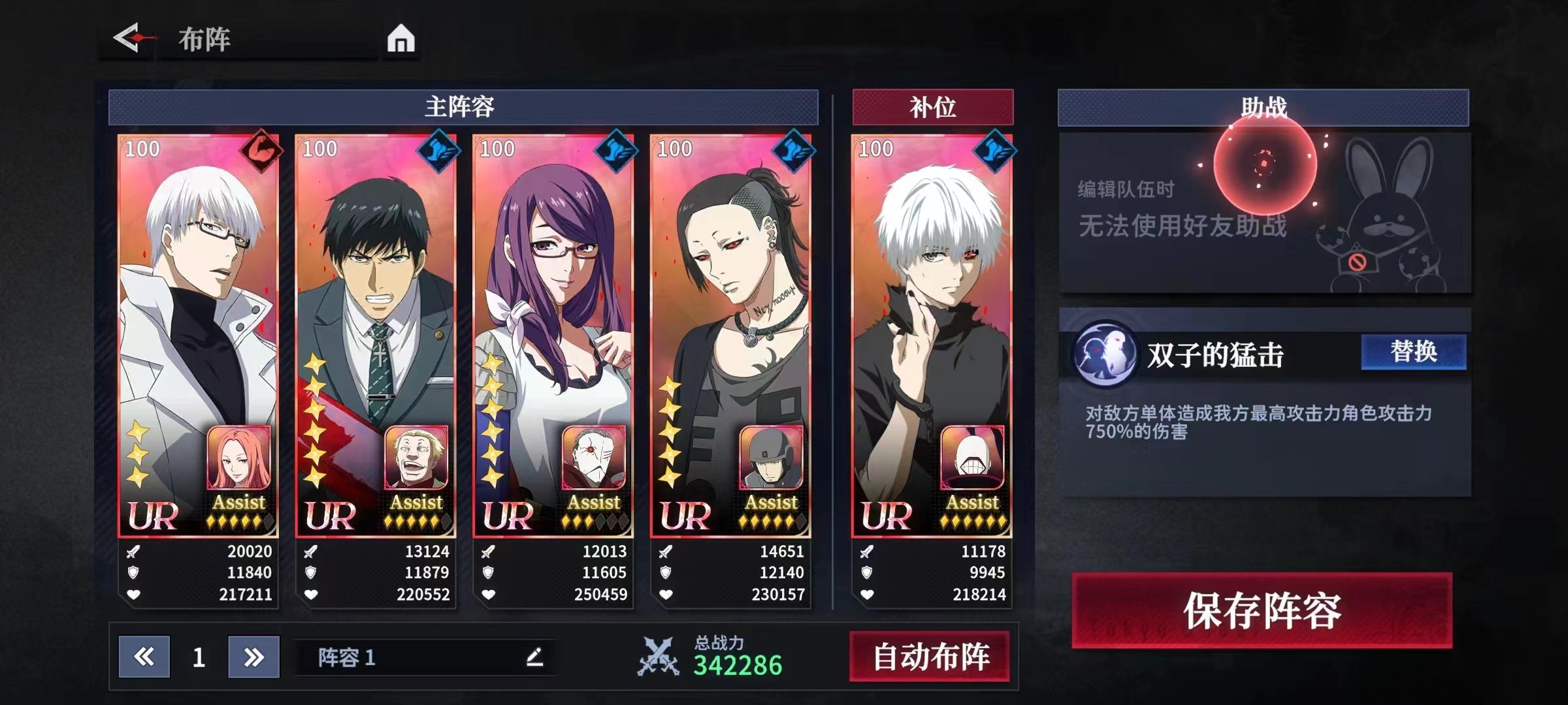 值得要说的是,在PVE阵容中比较推荐该战队搭配,一是诗的辅助技能我就不多说了;二的黑金木速属性暴击强化,不知道有多少人看过这个被动:【补位也生效】使我方所有速属性角色暴击伤害增加15%,这个效果哪怕放补位挂件也能打出更高的输出;三是神代的群体攻击强化能力以及本身神代的暴击率也不低,更有挂件被动的回复强化;四是有马的联合攻击效果了,每次攻击能多打一次输出,能够将攻击拉满。