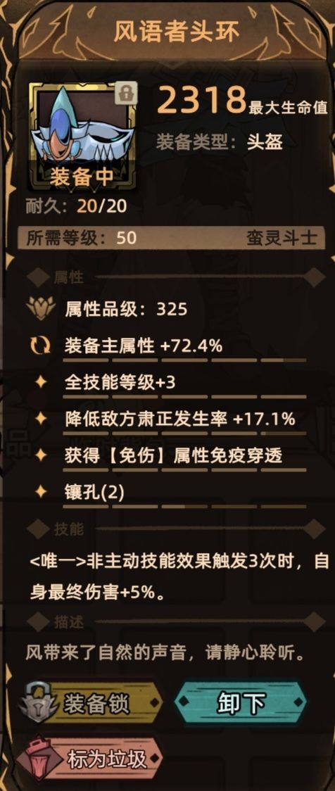 那么套装属性要什么呢,在所有套装必须要3孔不用多说,对于头盔、护手、鞋子这三件主属性为生命值的部件,核心词条就是主属性提升,越多越好。其次就是暴伤、全元素增幅、元素穿透、全技能等级。另两件防具主属性是防御力,就不需要主属性提升,其他都一样。