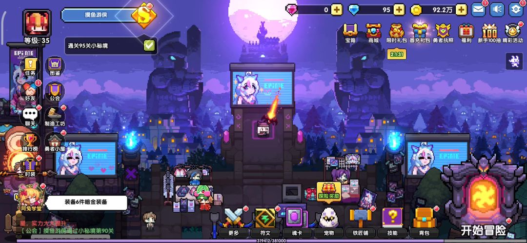 等级到达A,解锁至80层小秘境