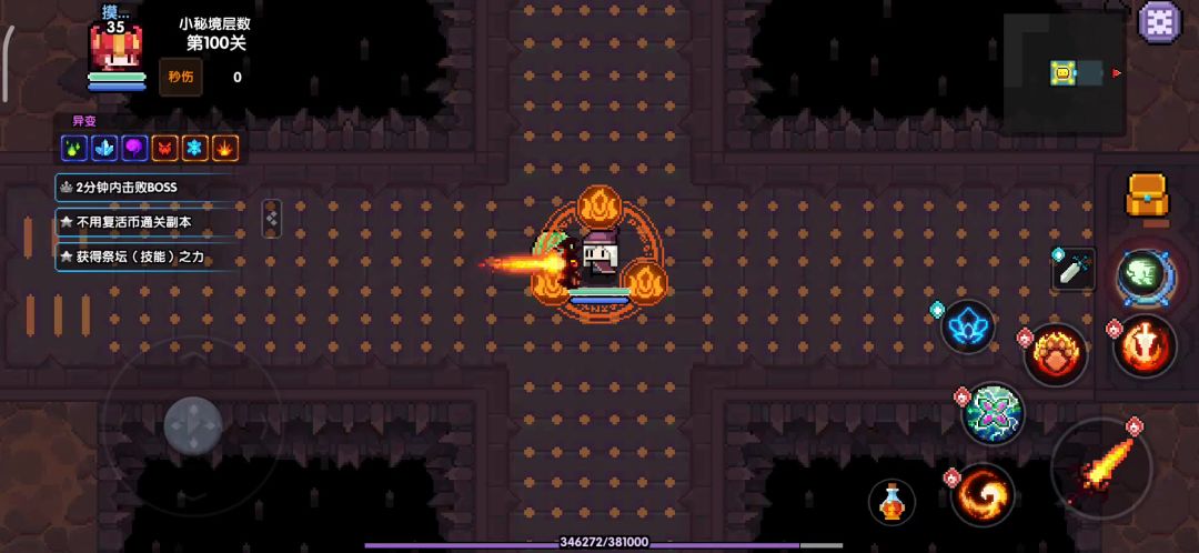 1、注意自己身上的流血层数(下方buff栏,有个血液一样的图标),叠层到8层左右就要到左下角喝泉水(点一下普攻,与泉水交互)。不然满12层直接被秒杀