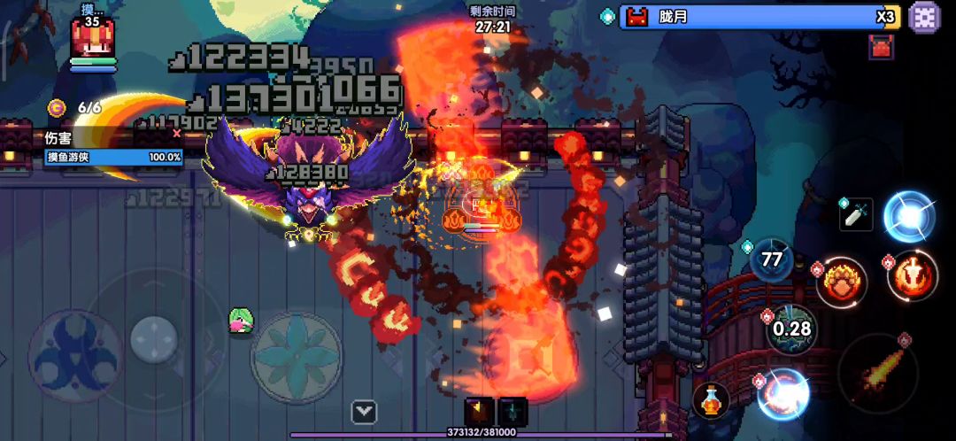 3、地上有时候会出现羽毛,如视频中,在右方出现红色羽毛,此时理应使用水系伤害(比如武器)来清除掉 。但实际上,不清除也没有太大影响,所以我直接干脆不管了