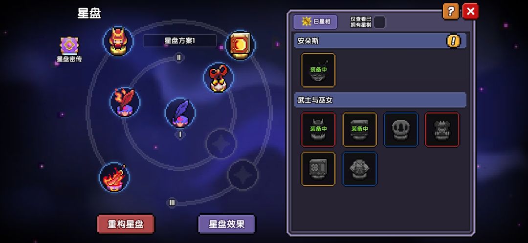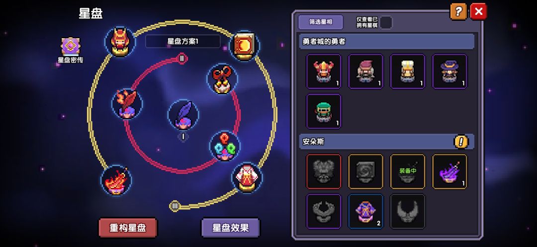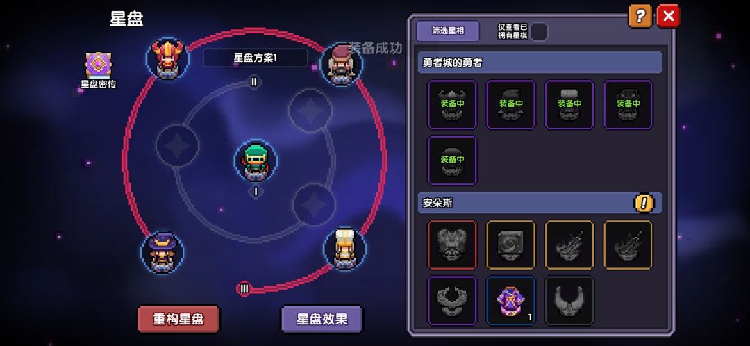 来到星盘,先把勇者棋子装上,再把刚才获得的全部棋子装上。总之:就是都装过一遍