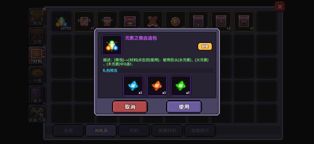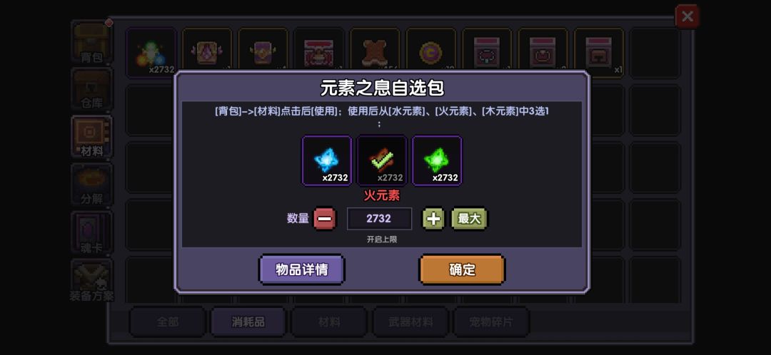 “元素之息自选包”全选“火元素”,可以提升“火结晶”等级,从而提高火符文能量。达到400火符文能量,即可解锁全部额外效果