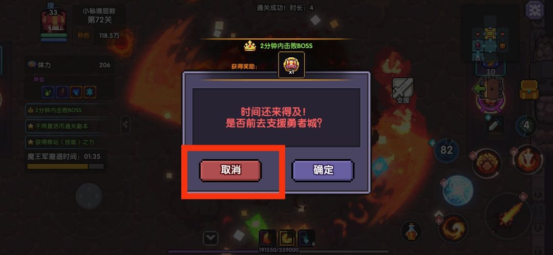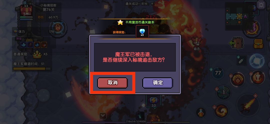 记得先点“取消”,开完宝箱后再去点“支援”和“追击”