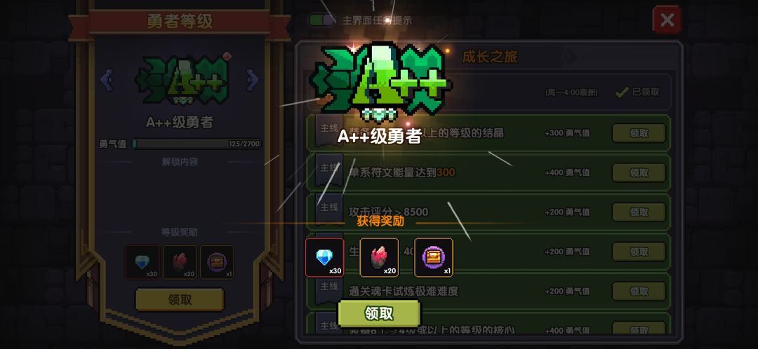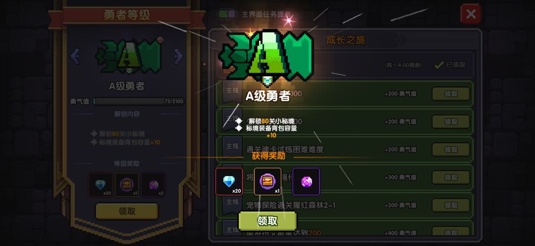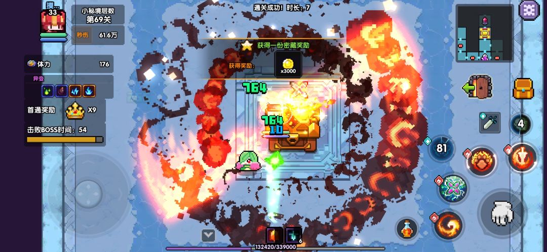 打完跳关机制最后一关,直接跳到70层,前面奖励也是全按3星给了