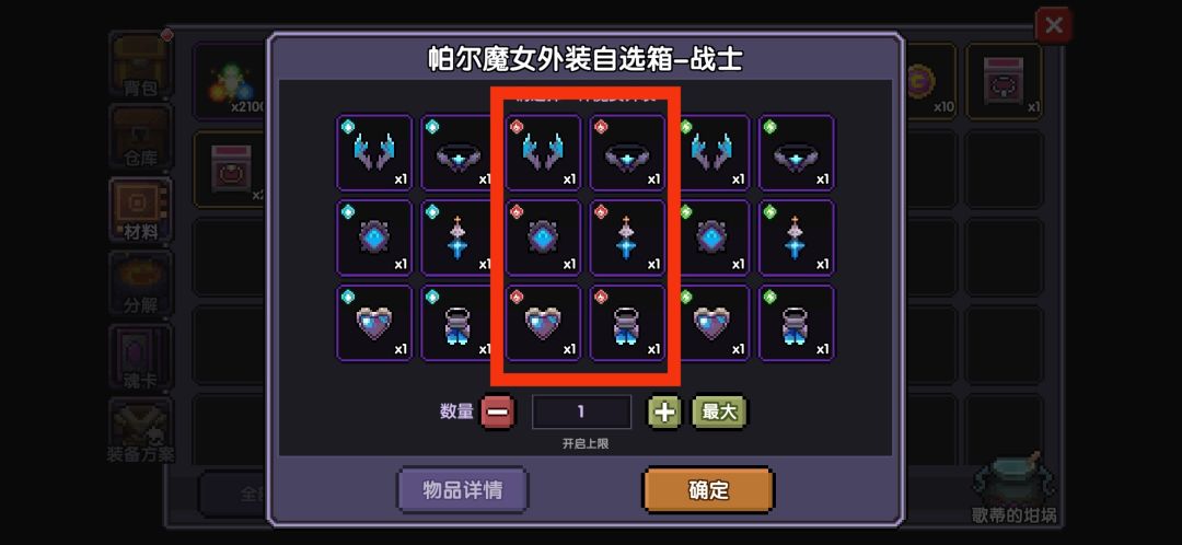 蓝框部分(头部、披风、项链、戒指)只需要打造1个就行,属性是什么都没关系。