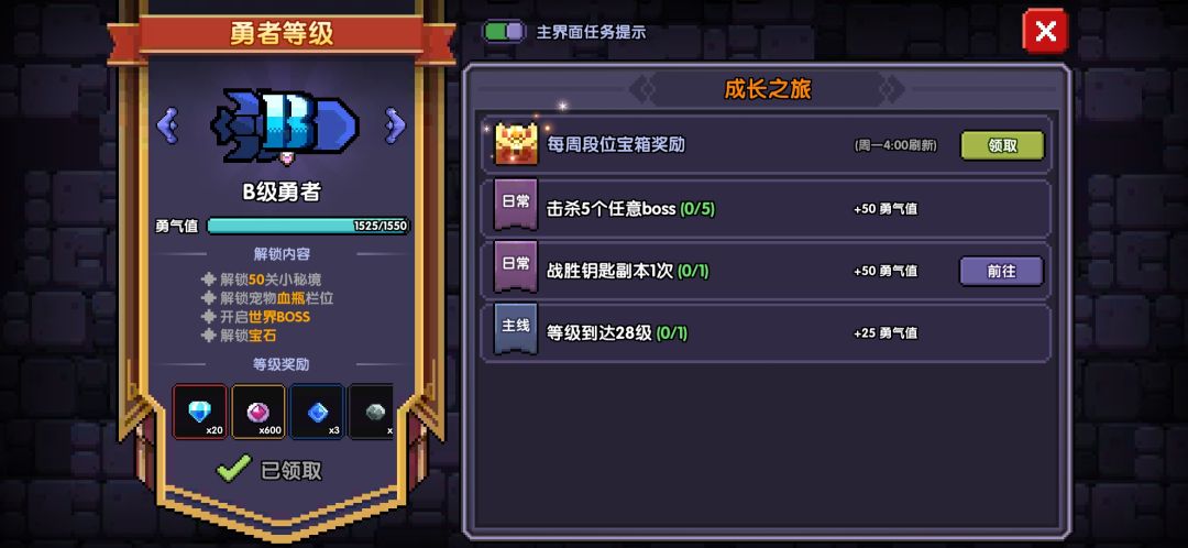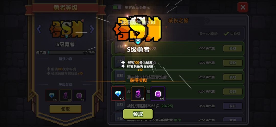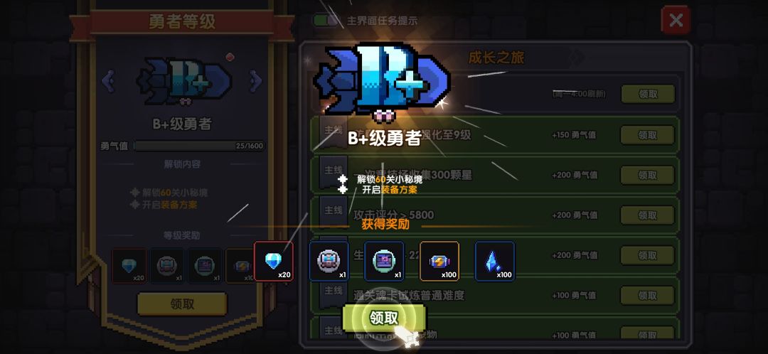 提交一下任务,到达B++,解锁“次元口袋系统”(相当于自动拾取功能)