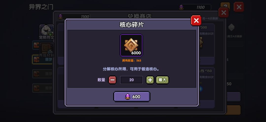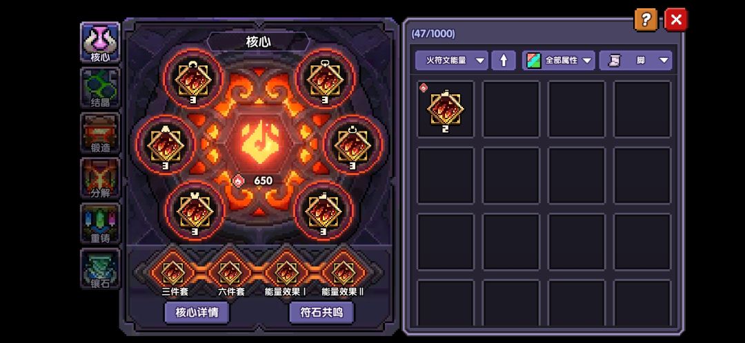在异界之门,搞点“核心碎片”后,继续开始打造符文,符文能量来到650