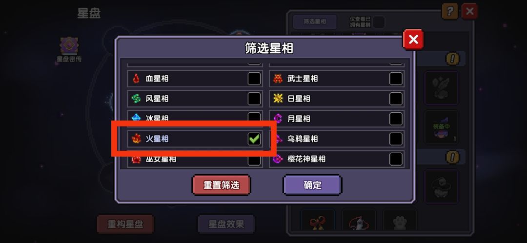 ”筛选星相”,选出“日星相”、“火星相”、“乌鸦星相”