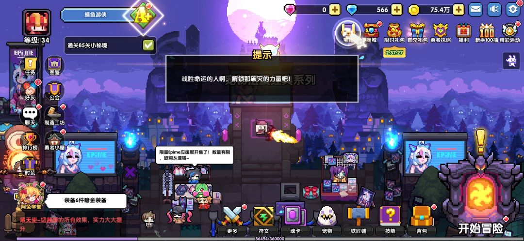 继续战斗,打到84、85层,这两层都是特殊关卡(很容易过的)