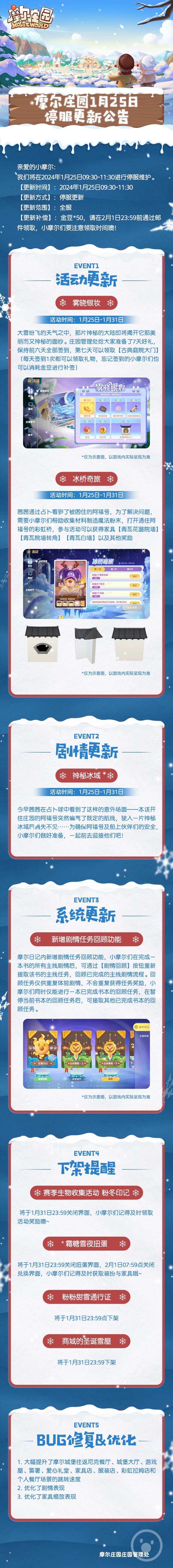 【更新补偿】:金豆*50,请在2月1日23:59前通过邮件领取,小摩尔们要注意领取时间噢!