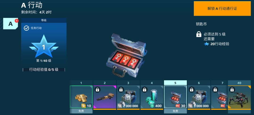 Step6:通过获取行动经验,获得更多资源的快速提升通行证经验,获得限定橙色机甲[入侵者]。