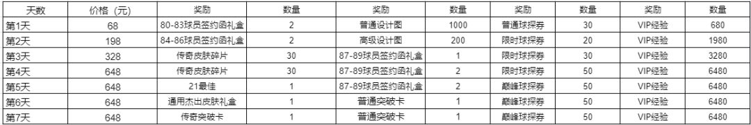 累天连充福利,累充六天均达到648档位即可获取最终大奖。