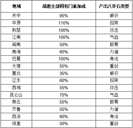 2.本土帮派兑换,帮派对应八卦石类型如下: