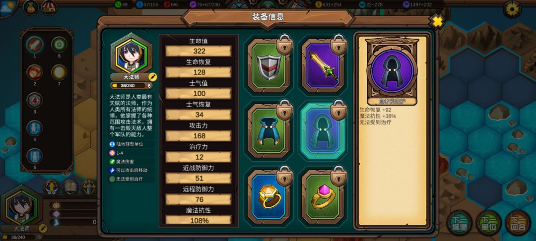 这里可以看到大法师的魔法抗性达到了惊人的108%