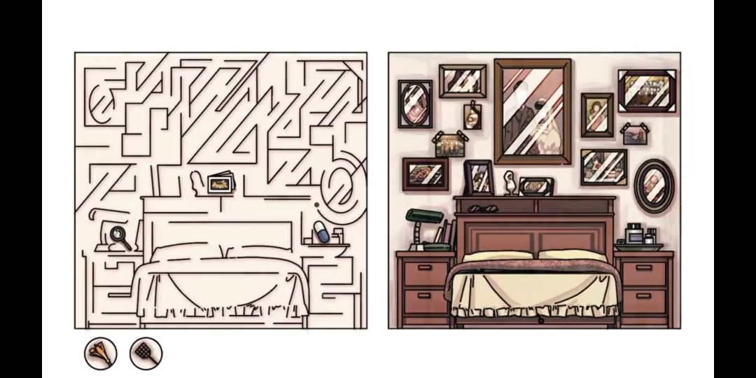 游戏中,使用视野框来模拟意识障碍者日常的认知受限状态,将需要强刺激强引导的病态认知习惯与迷宫设计相互结合。通过迷宫行走认知场景,并通过完成每日与"女儿"共同收拾行李的互动,回顾重要的人生记忆~