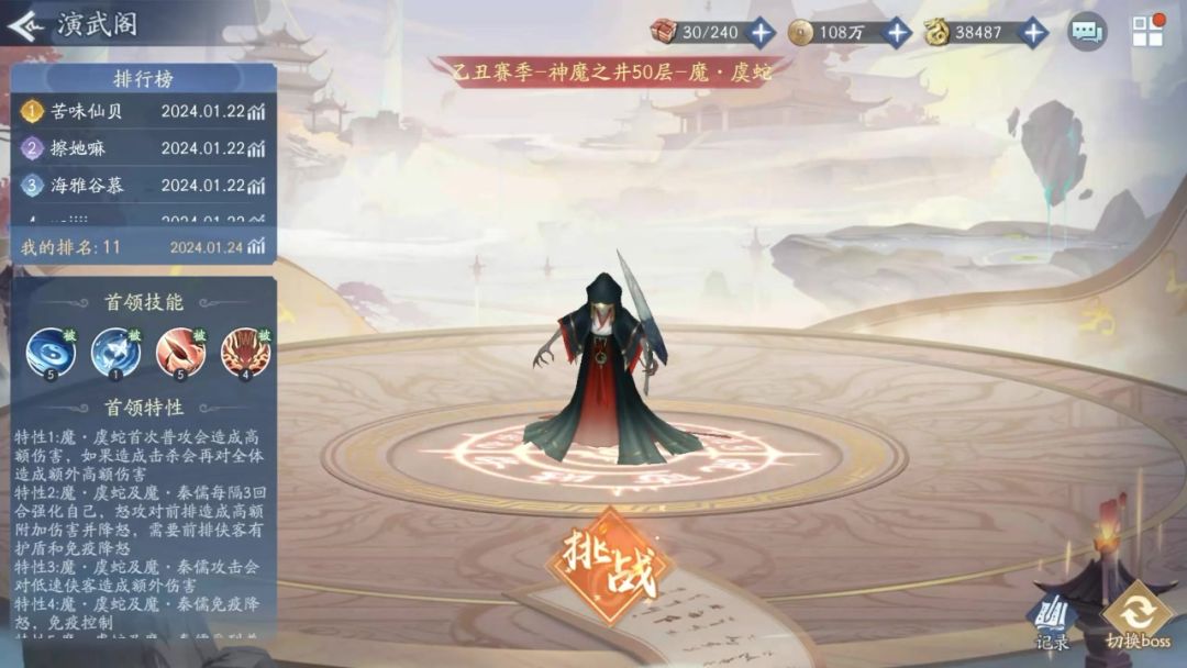 随着周一的到来,开服区的神魔之井也迎来了新赛季,虽然早就说过神魔之井的首领会随着赛季的提升不断增强,但真正进入了实战,还是让很多侠客怨声载道,特别是之前打3号首领的侠客们,很多都面临着从原先的60,70层,一路滑坡到30层的惨状。