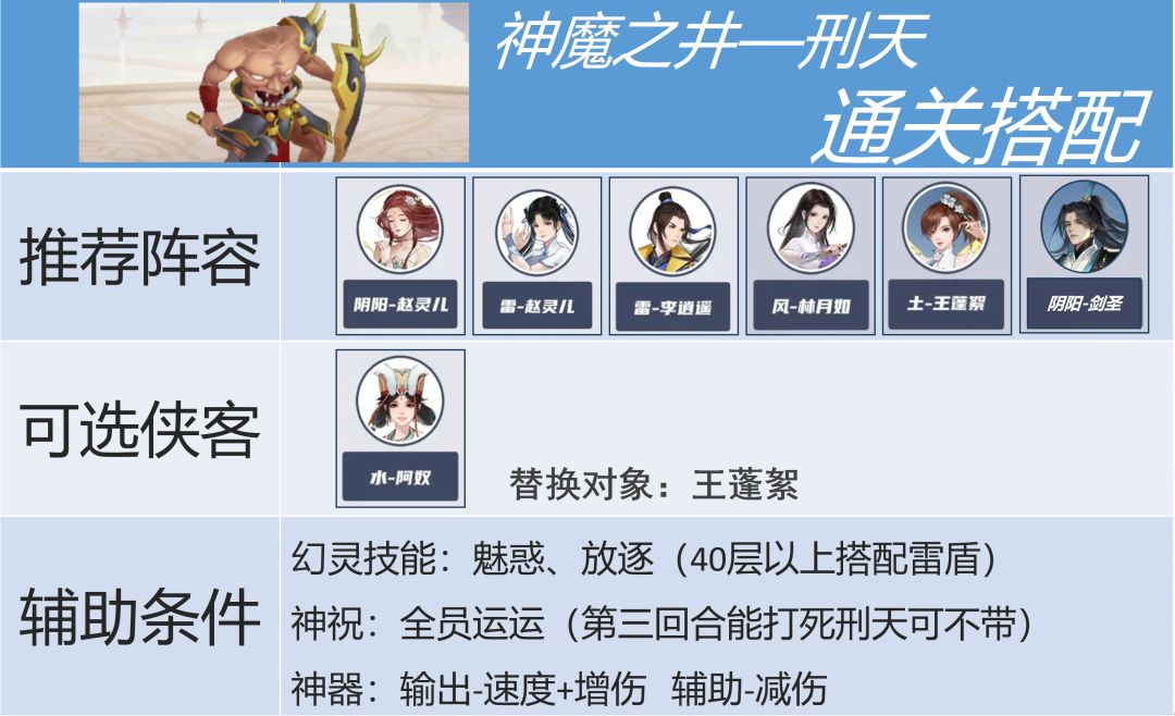 本次攻略主要针对更新后的神魔之井1号、2号、3号这三个风雷可打的首领进行阵容和练度提升需求的分析,希望能帮助各位侠客早日拿下50首通,顺利让周常宝箱能够在阴阳和稀有间自由选择。