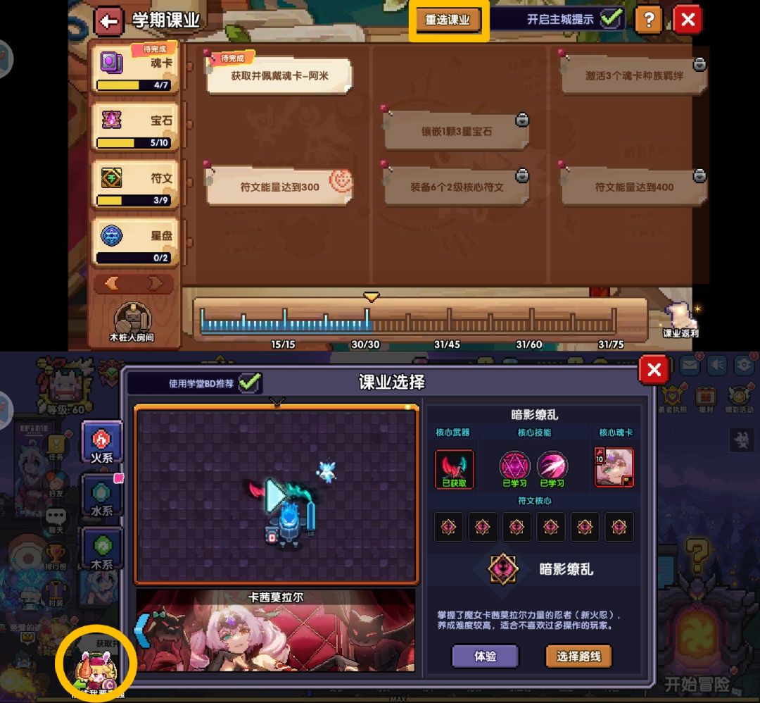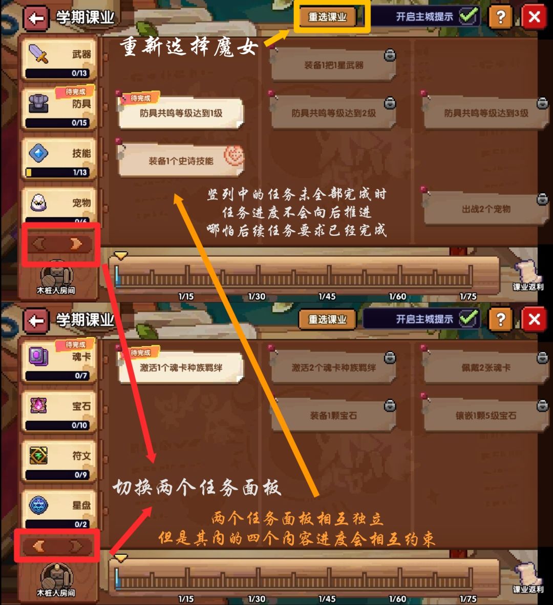 选择重选课业-切换魔女即可。