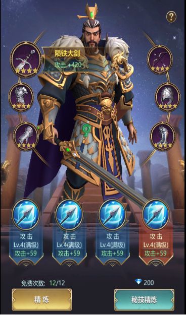精炼建议:在领主等级75级之前,把装备的星星点满就好,橙色和红色都点成3星,不需要在乎是什么技能;等领主等级升到75级,在15级的大学里面研究秘技技能后,将之前的3星装备花200钻石高级精炼,弄成4星就好。
