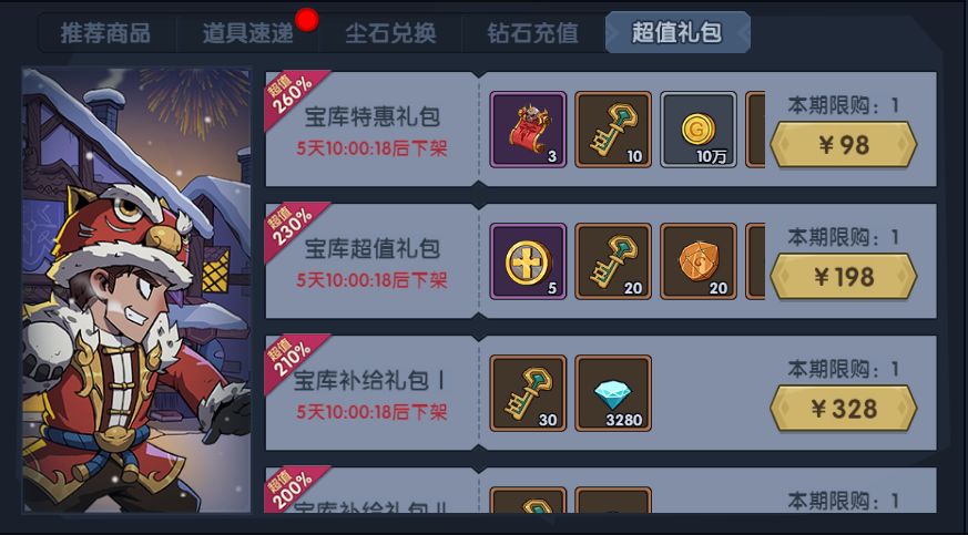 【推荐商品】中限时上架神之宝库特惠礼包!海量道具材料供应。