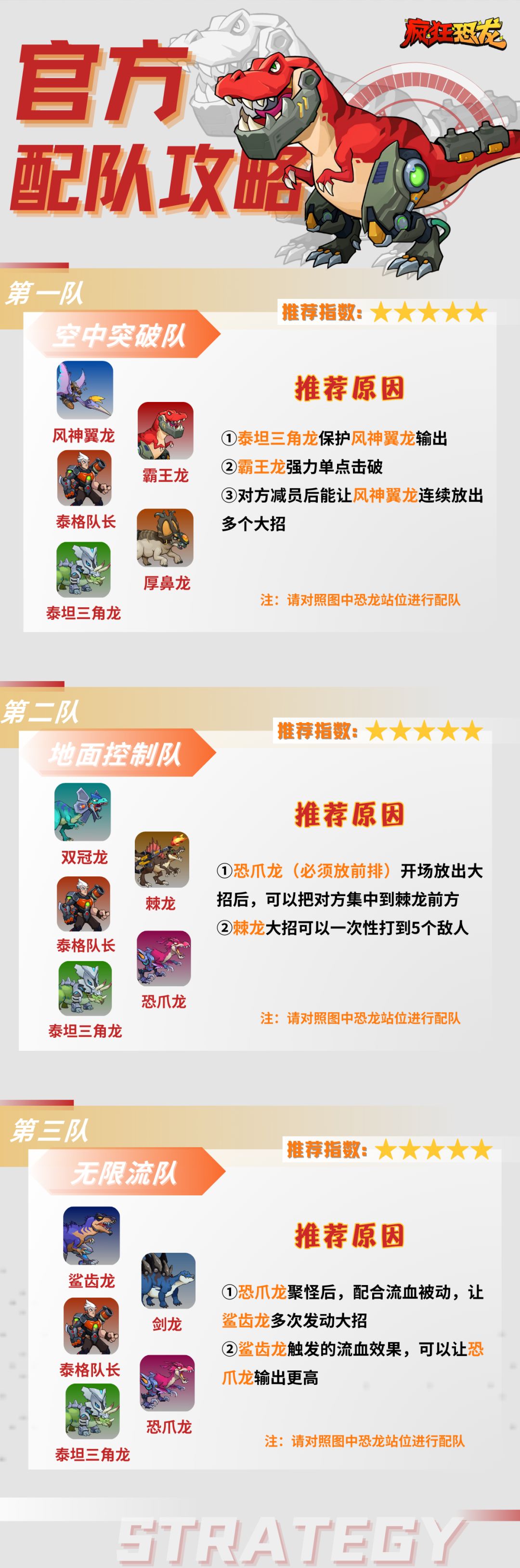 官方出品的<疯狂恐龙>配队推荐