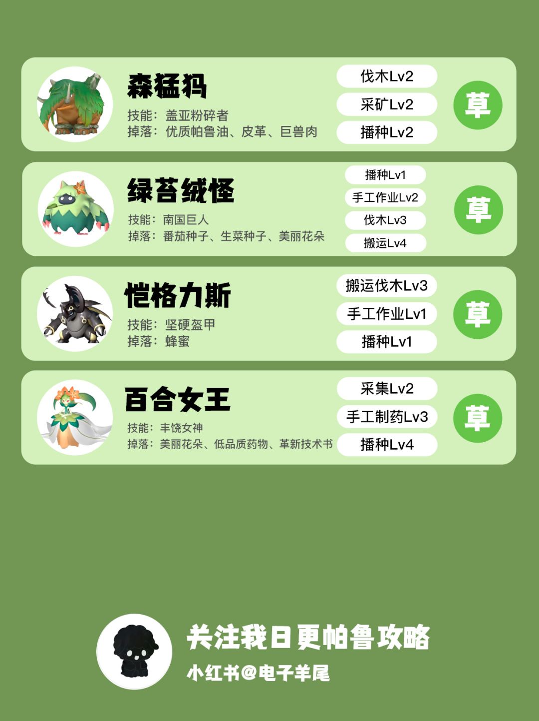 幻兽帕鲁🍃草属性帕鲁全图鉴