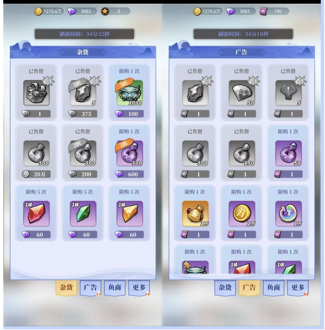 大家可以根据杂货店内的售价对比一下广告商店内的道具,看看钻石性价比兑换也可以。