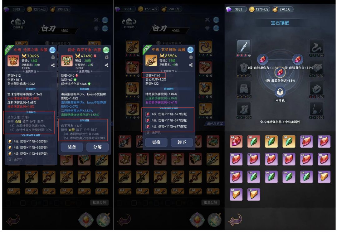 宝石就只需要注意一点:对应属性的宝石需要镶嵌在对应主属性的装备上!