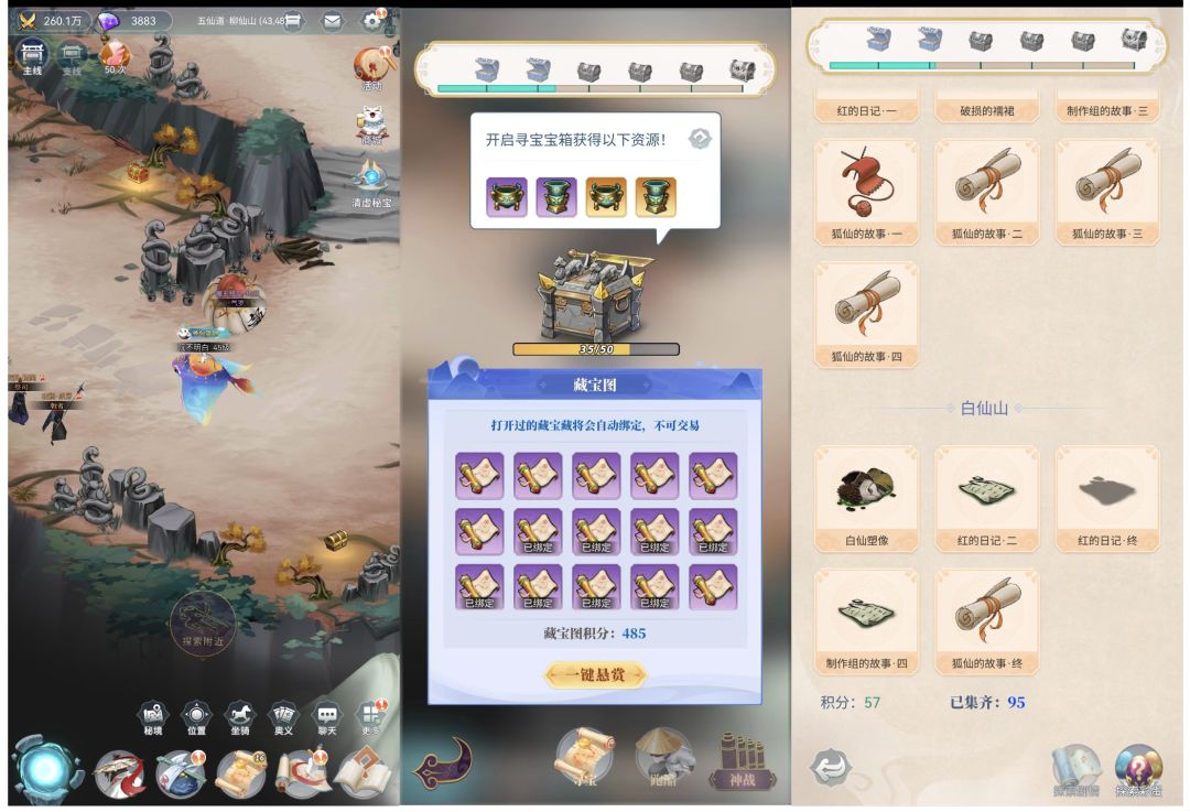 秘境的话如其名,是一个自由度相对较高的探索玩法,里面有很多小彩蛋,同时也会有一定的资源产出。在其他地方获得的藏宝图也对应这秘境内的一个地点。