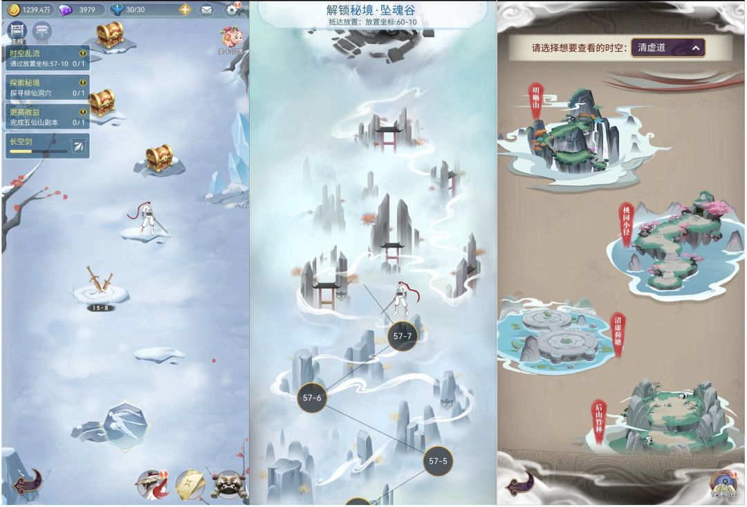 放置这一块儿,是装备日常的产出途径,也是前文提到游戏内的系统会随放置坐标的推进而解锁(如钓鱼、秘境等等),同时产出的装备等级也会随着放置进度而增加