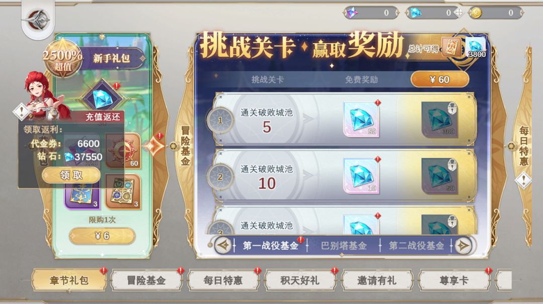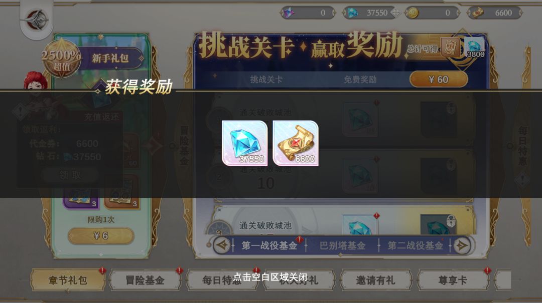 ※骑士大人在『先遣计费测试』中购买钻石、月卡、礼包等累计充值5500元,在正式上线后可在商城界面领取6600代金券,额外获得37550钻石返还。