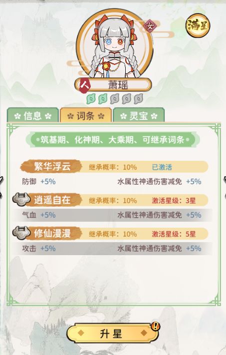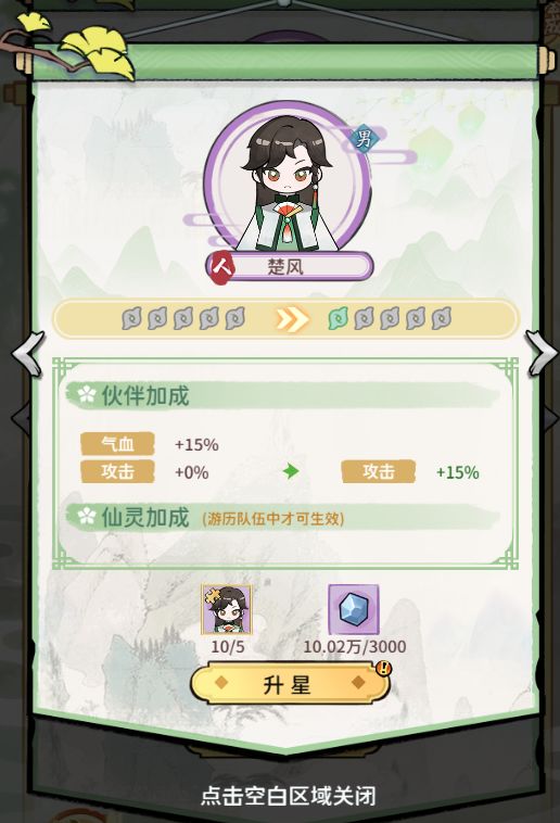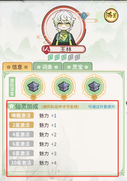 给仙灵进行升星后,对应的游历属性加成也将得到提升