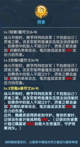 本次的新符文套装为贤者套装。这是首套攻守兼备的符文套装,在增强同列队友输出能力的同时,还能增强佩戴者自身的生存能力(仅限六星符文)。
