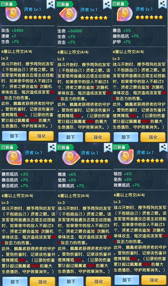 适合辅助类英雄携带,如生命女神、庇佑之灵、灵魂魔女等。同时,贤者符文套装适合辅助普通攻击、主动技能目标数量均不超过3个的输出英雄,例如虚空之界、弑神剑魔、涟漪之灵等。配队时,让携带贤者符文的我方英雄与这些输出英雄处于同列可以触发较好的效果。