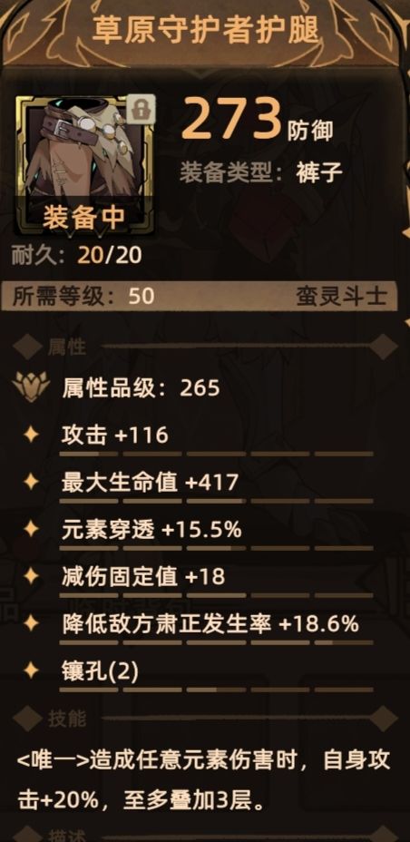 这个裤子确实好用,元穿肃正都是我们需要的,下面的攻击词条在前期提升巨大
