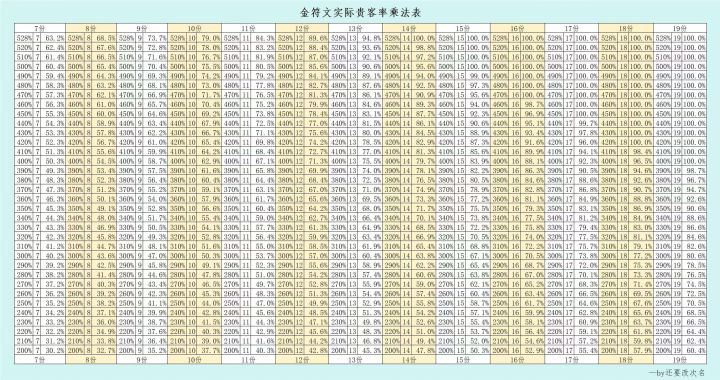 自从风云宴会群里的机器人驾鹤西游后,一直没地方算金符文实际概率。自己做一张对应表吧,表中举例510贵客率15份出现概率100%。