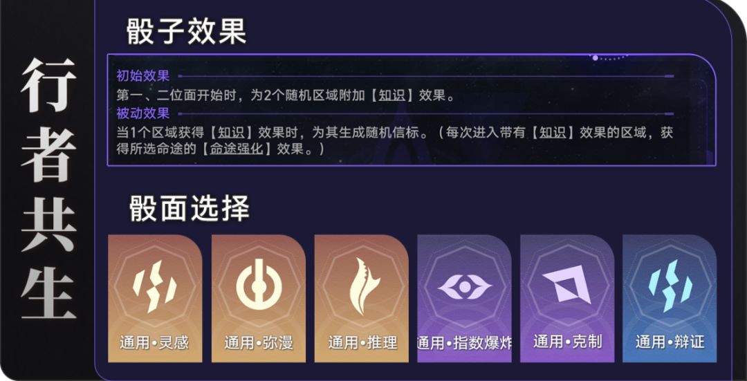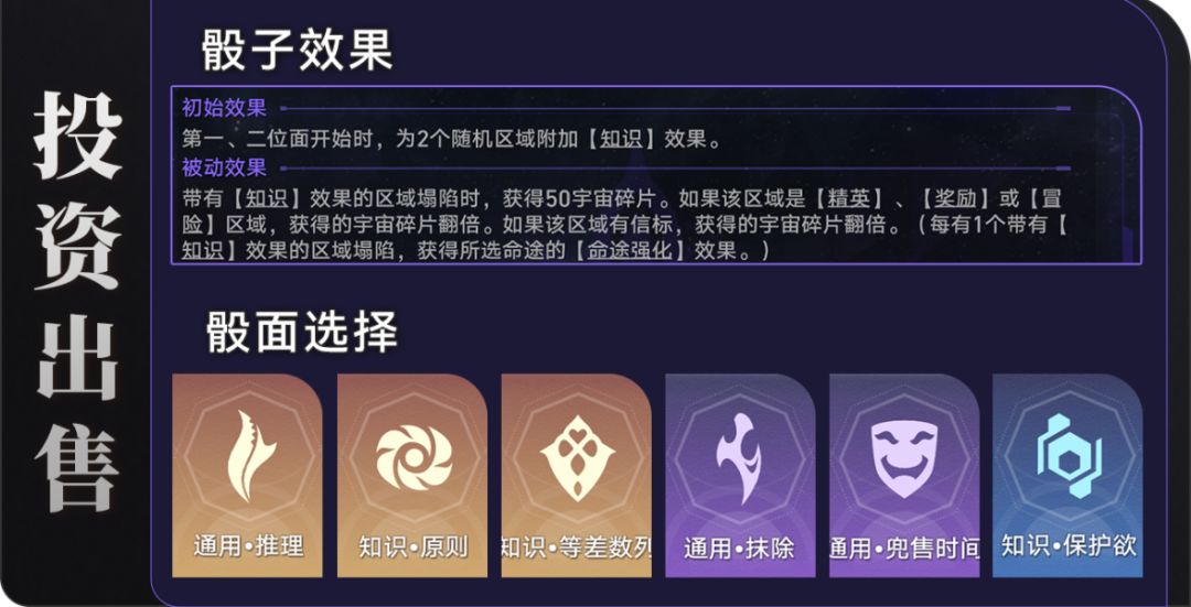 (2)前期多铺设【知识】区域,中期使用【原则】骰面翻倍即可