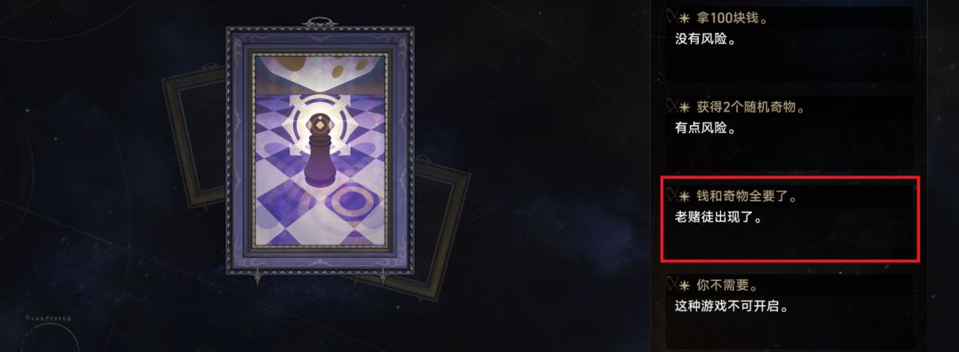(1)在刷到【作弊代码(其一)】时,选择【钱和奇物全要了】
