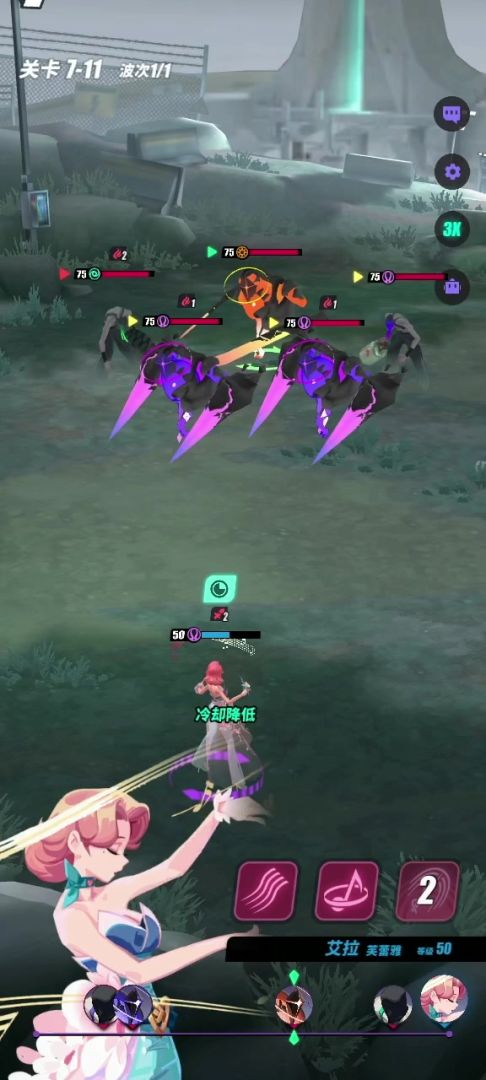 攻击全体敌方,伤害为自身攻击力90%,为目标附加2回合[速度下降],降低目标30% 行动值。重置女神眷顾冷却。