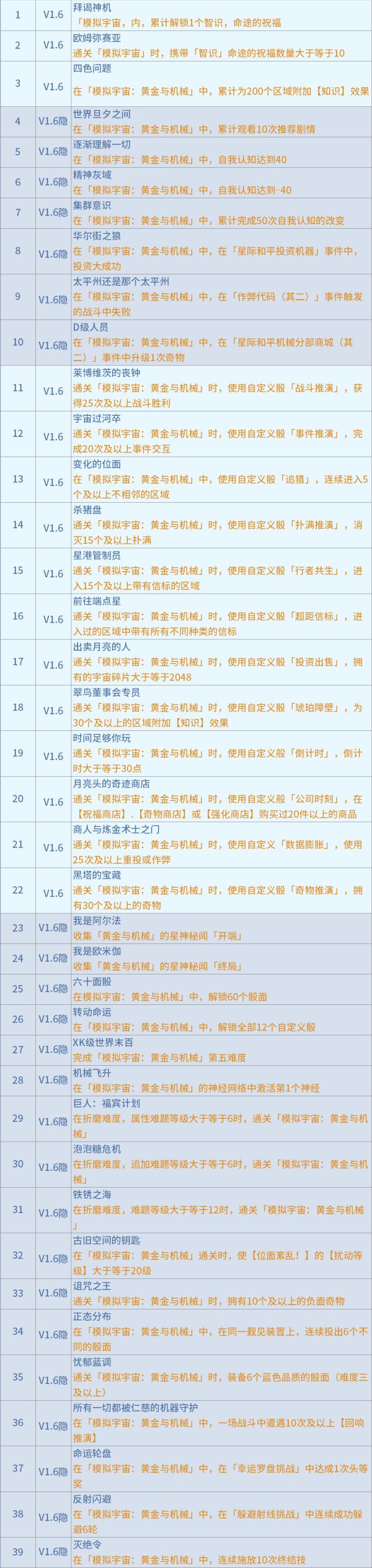 (1)成就列表如下(共39个)成就一览