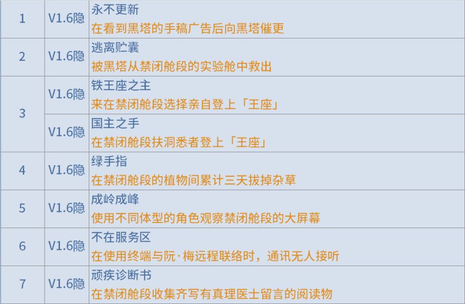 1.6版本新增成就 及其攻略